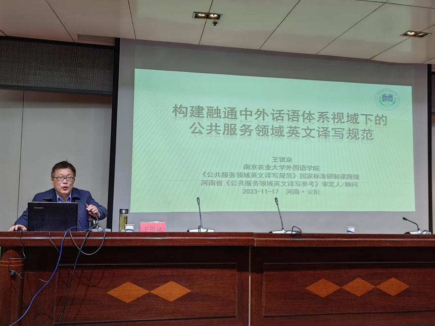 11月17日上午,应公司FUN88乐天使邀请,南京农业大学FUN88乐天使教授王银泉在艺术楼二楼报告厅为FUN88乐天使师生作题为“构建融通中外话语体系视域下的公共服务领域英文译写”的学术报告。FUN88乐天使300余名师生参加报告会。