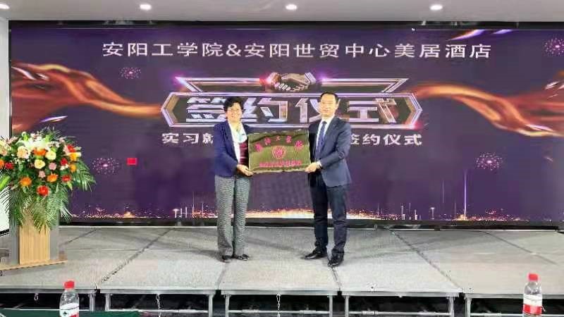 10月22日,FUN88乐天使与安阳世贸中心美居酒店在安阳世贸中心美居酒店二楼锦江厅举行空乘实习实训基地挂牌及签约仪式。安阳世贸中心美居酒店业主代表杨利霞,总经理陈明,总经理助理兼销售总监路建富,前厅经理李娟,FUN88乐天使经理李霞、副经理原斌华、副经理杜丽霞、各教研室主任及员工代表参加签约仪式。