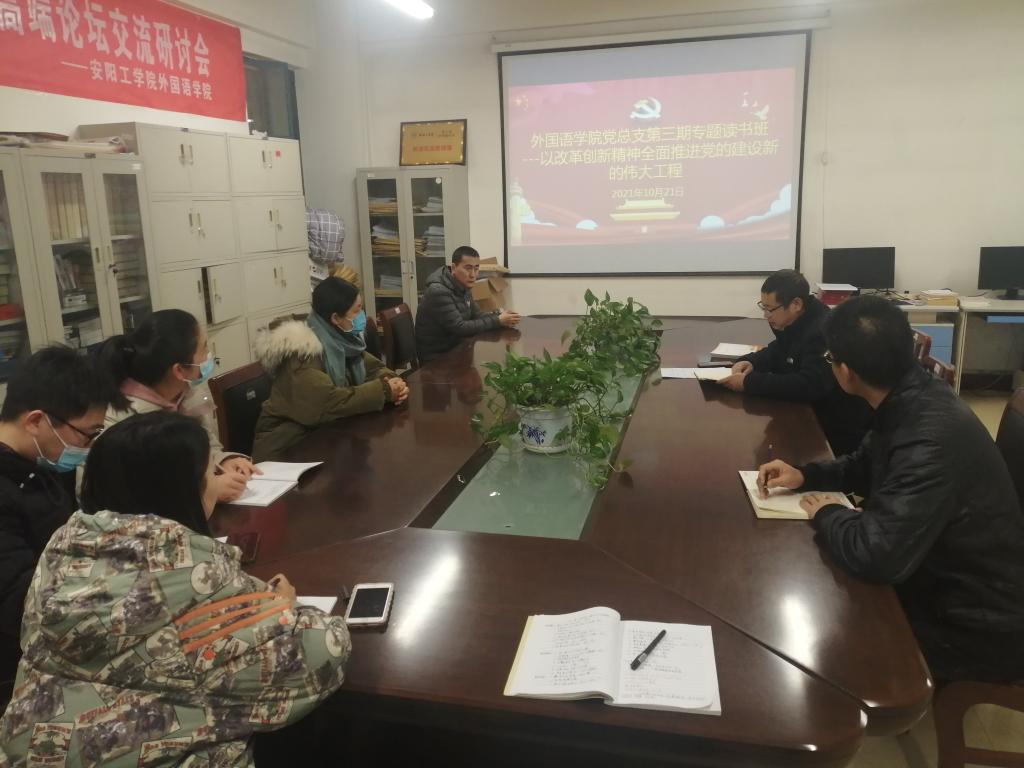 10月21日,FUN88乐天使党总支在A10-201会议室举办党史学习教育第三期专题读书班。公司党总支中心组成员、各辅导员参加学习。