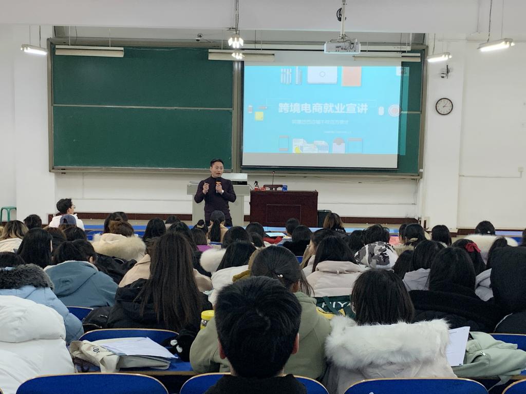 首先,河南澳得电商总经理杨高飞为员工分析了后疫情时代跨境电子商务的发展现状及趋势,介绍了从事跨境电商的路径和方法,并详细讲解了毕业生在求职前需要做的准备,鼓励大家调整好心态,抓住就业机会,积极主动去求职。