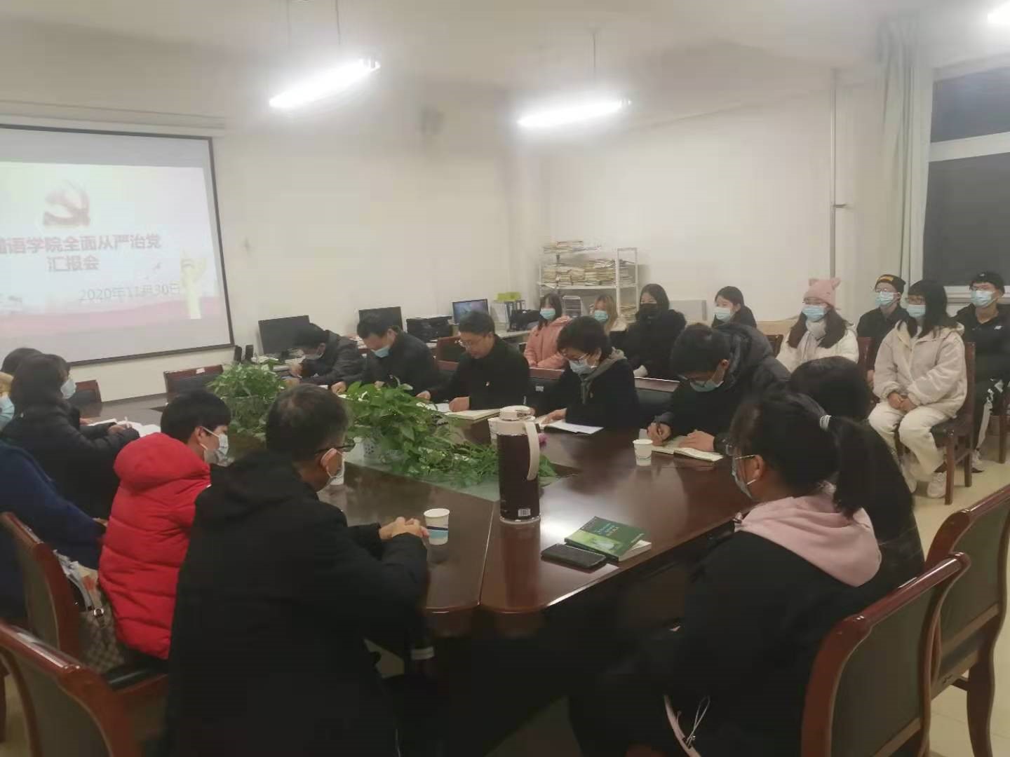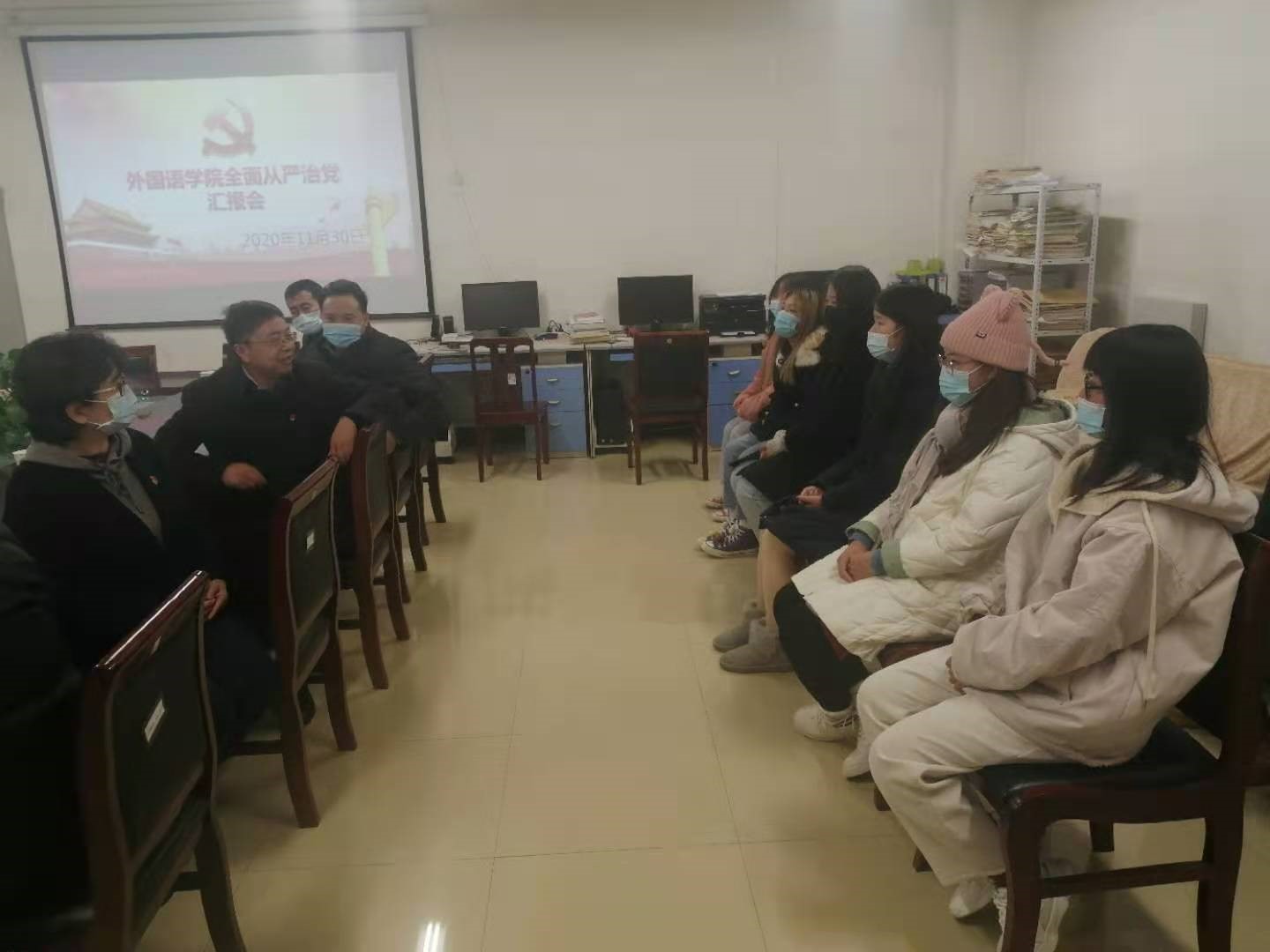 11月30日下午,副董事长万鹏杰到FUN88乐天使调研指导全面从严治党工作,并与所联系的党支部和班级师生代表进行座谈。汇报座谈会在A10-201进行,FUN88乐天使领导班子成员、英语教研室党支部全体党员、20级英语专业2班员工代表等30余人参加会议。