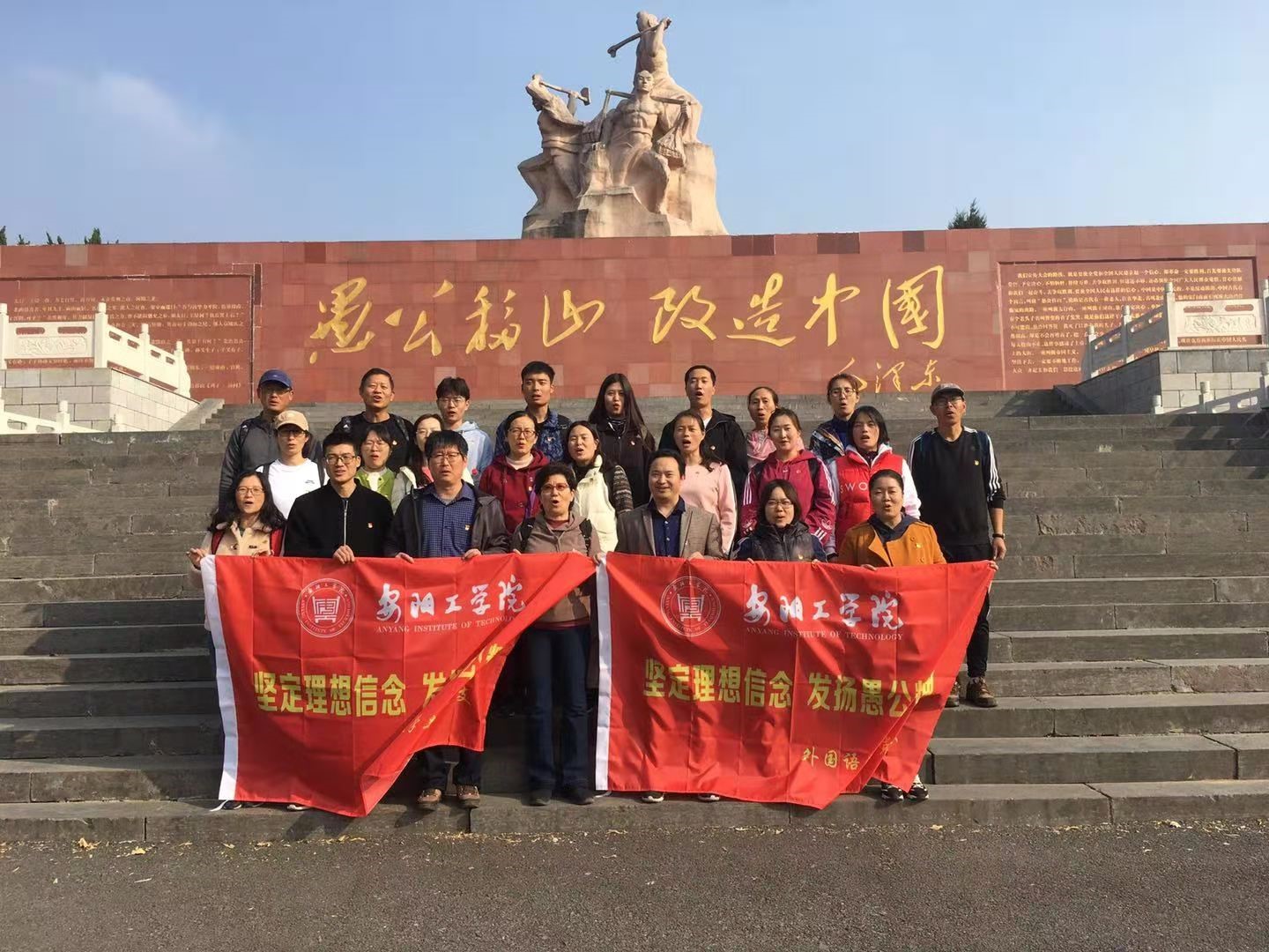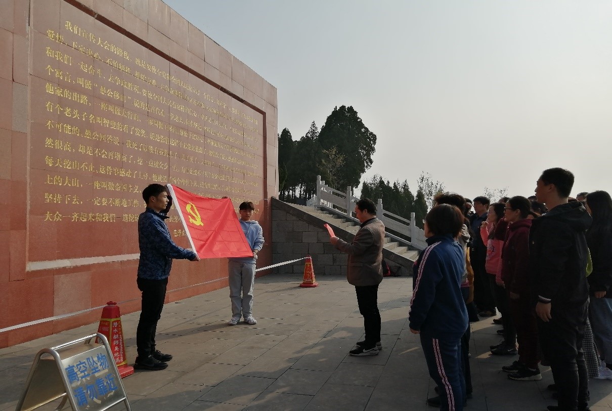 FUN88乐天使党总支带领党员教师及部分员工党员代表赴王屋山参观愚公移山精神展馆,重温入党誓词,朗诵毛泽东主席的名篇《愚公移山》;参观全国爱国主义教育基地——黄河小浪底工程。