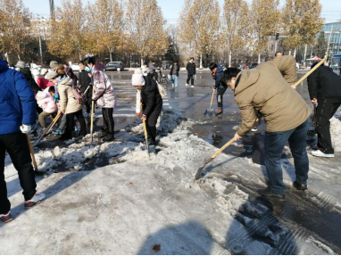 FUN88乐天使党员师生发挥先锋模范作用,认真清理公司东门黄河大道与峨眉大道交叉口地面上的积雪和冰层,经过大家团结协作,努力劳动,积雪厚冰已被基本清除,湿滑难行的道路变得干净整洁,为过往员工和行人打通了一条“安全路”。