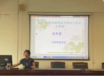段军霞教授长期致力于英美文学的研究,尤其在理查德·鲍尔斯作品的研究领域有着深厚的造诣。报告会上,段教授深入浅出地解析了鲍尔斯作品中所体现的后人类思想,从历史背景、文学意义及其对现代社会的启示等多个角度进行阐述,内容丰富,视角独特。